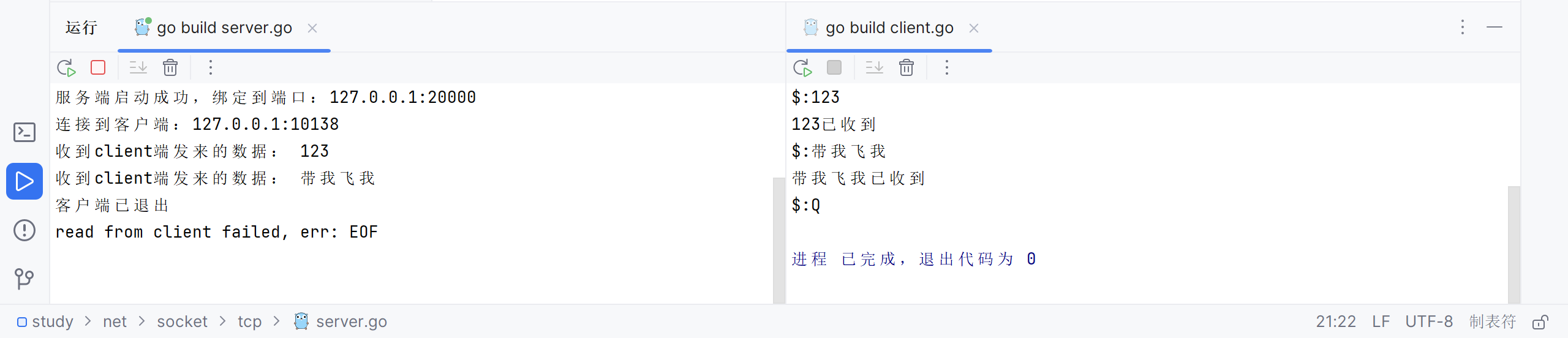 _, err = conn.Write([]byte(inputInfo)) // 向服务端发送数据